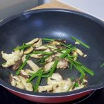 3. In a wok, add in oil, mushrooms, chives and stir-fry till fragrant for about 1-2 minutes.