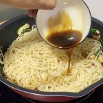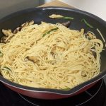 4. Add in the noodles and stir fry briefly.
